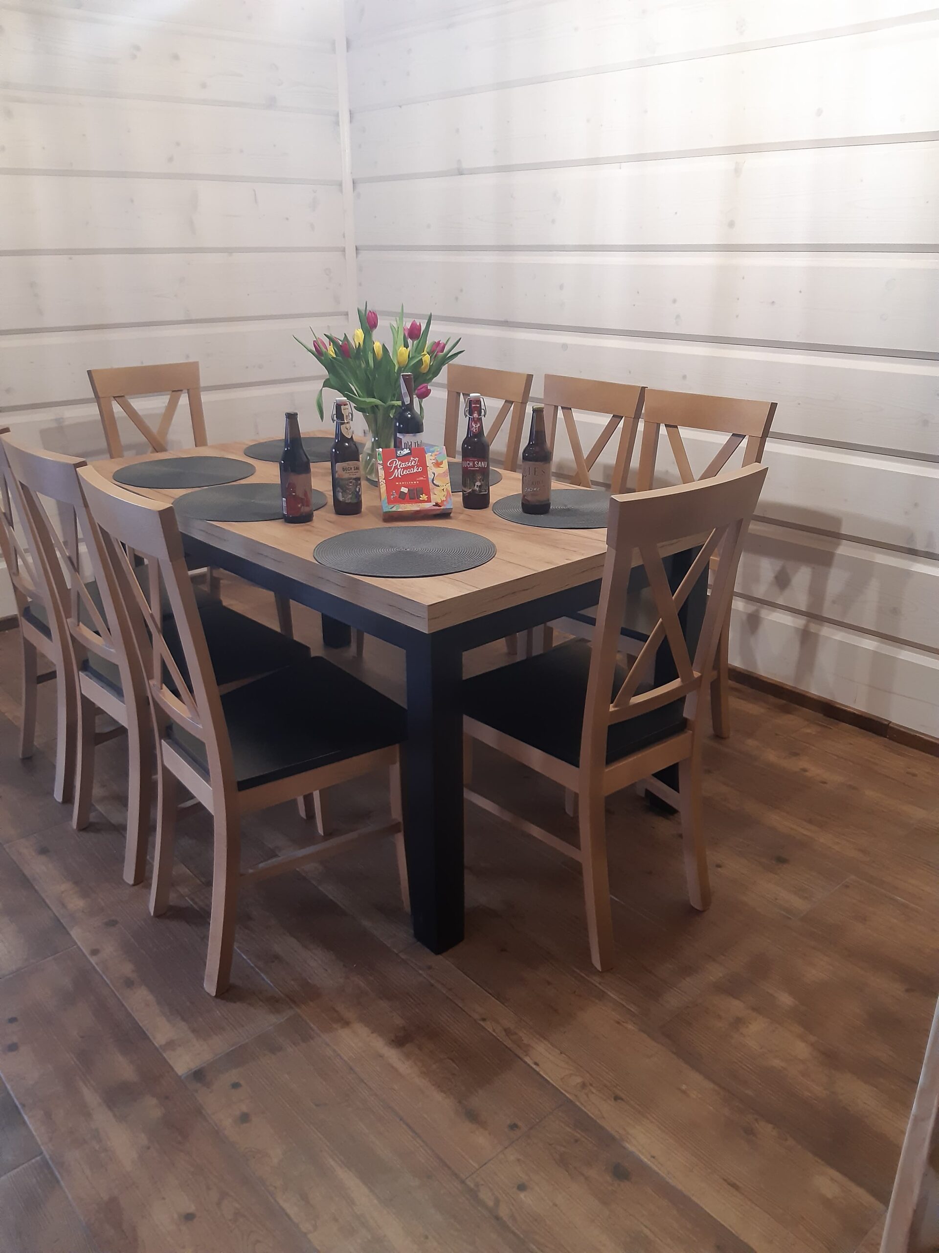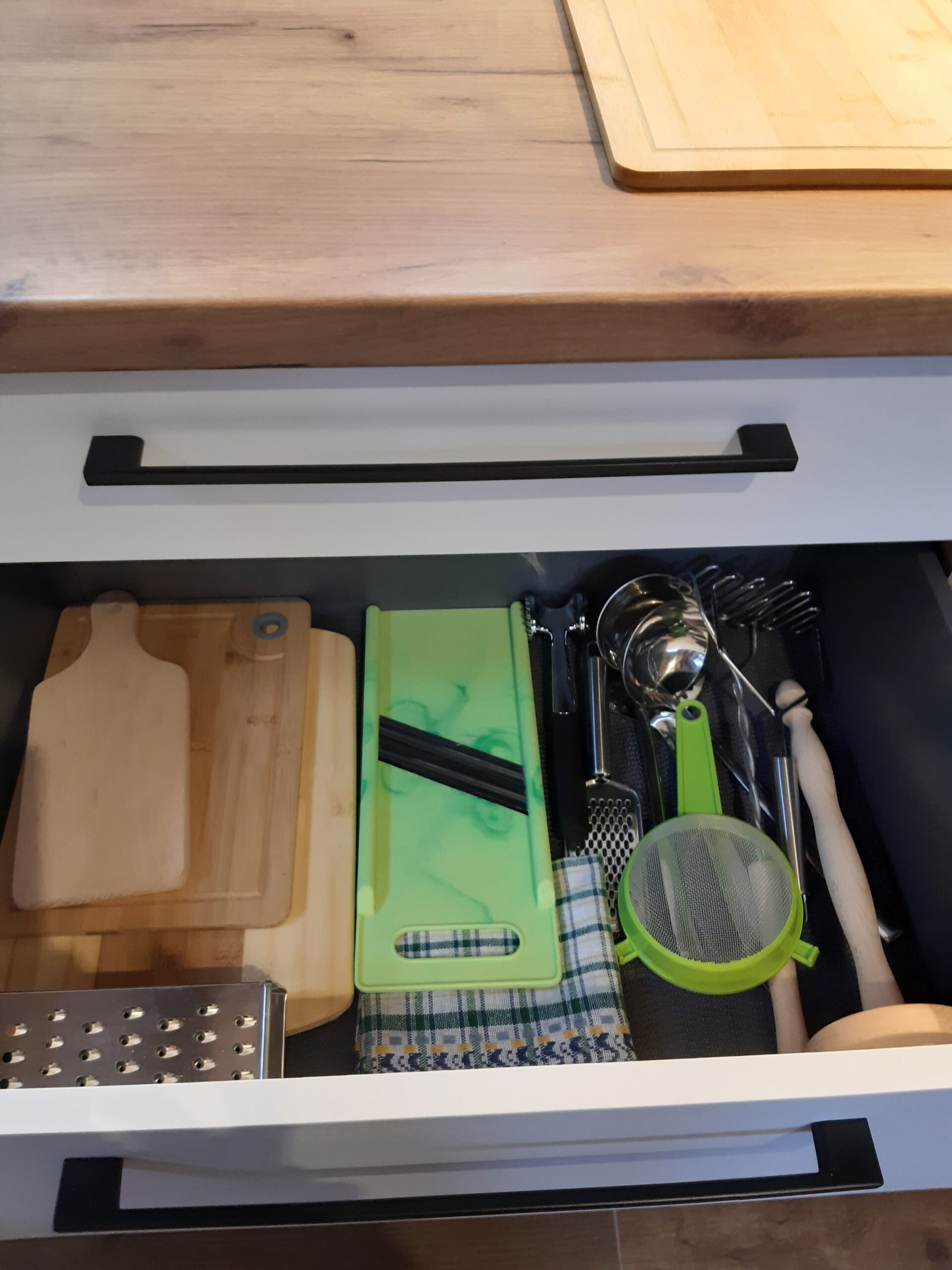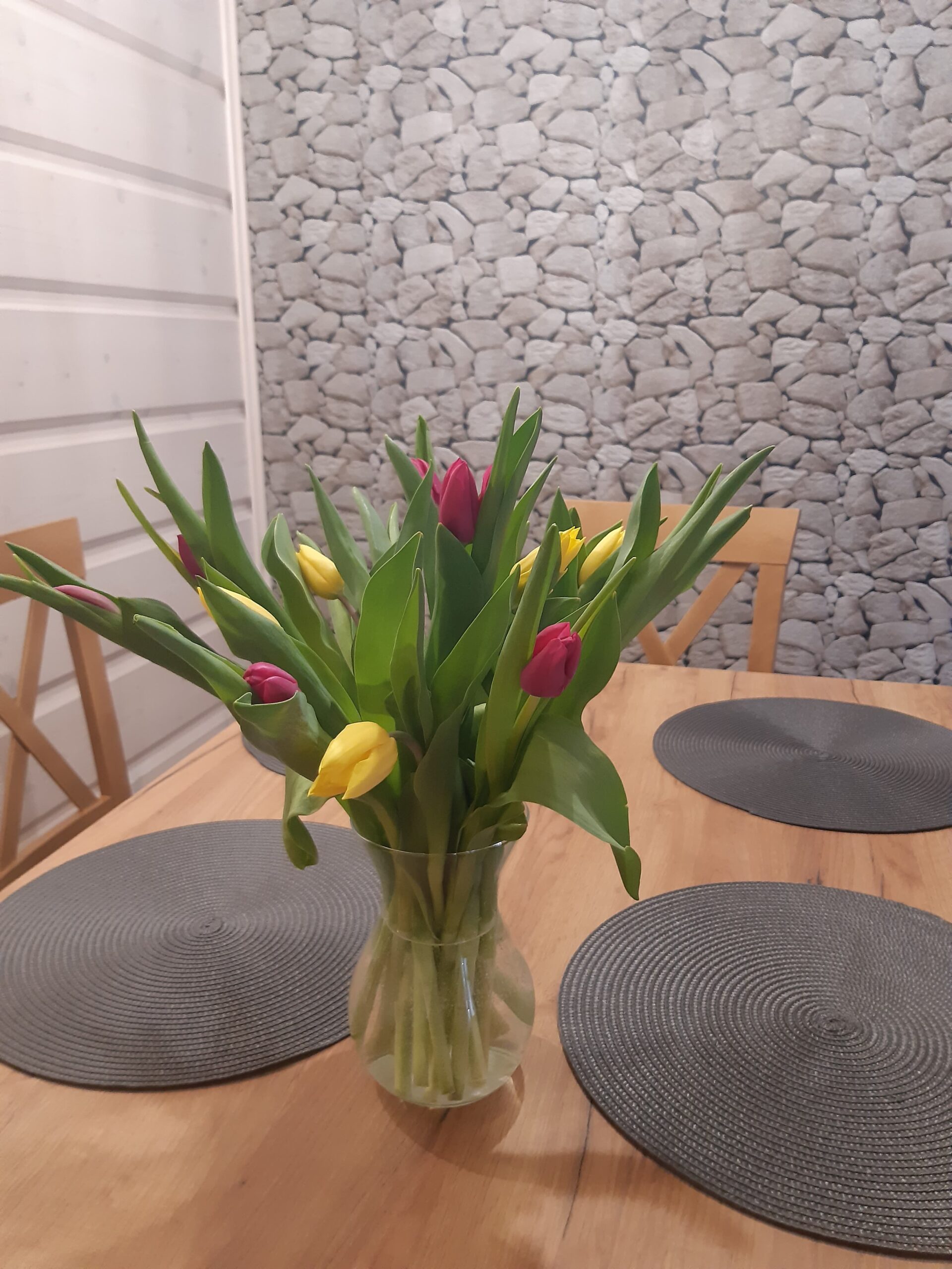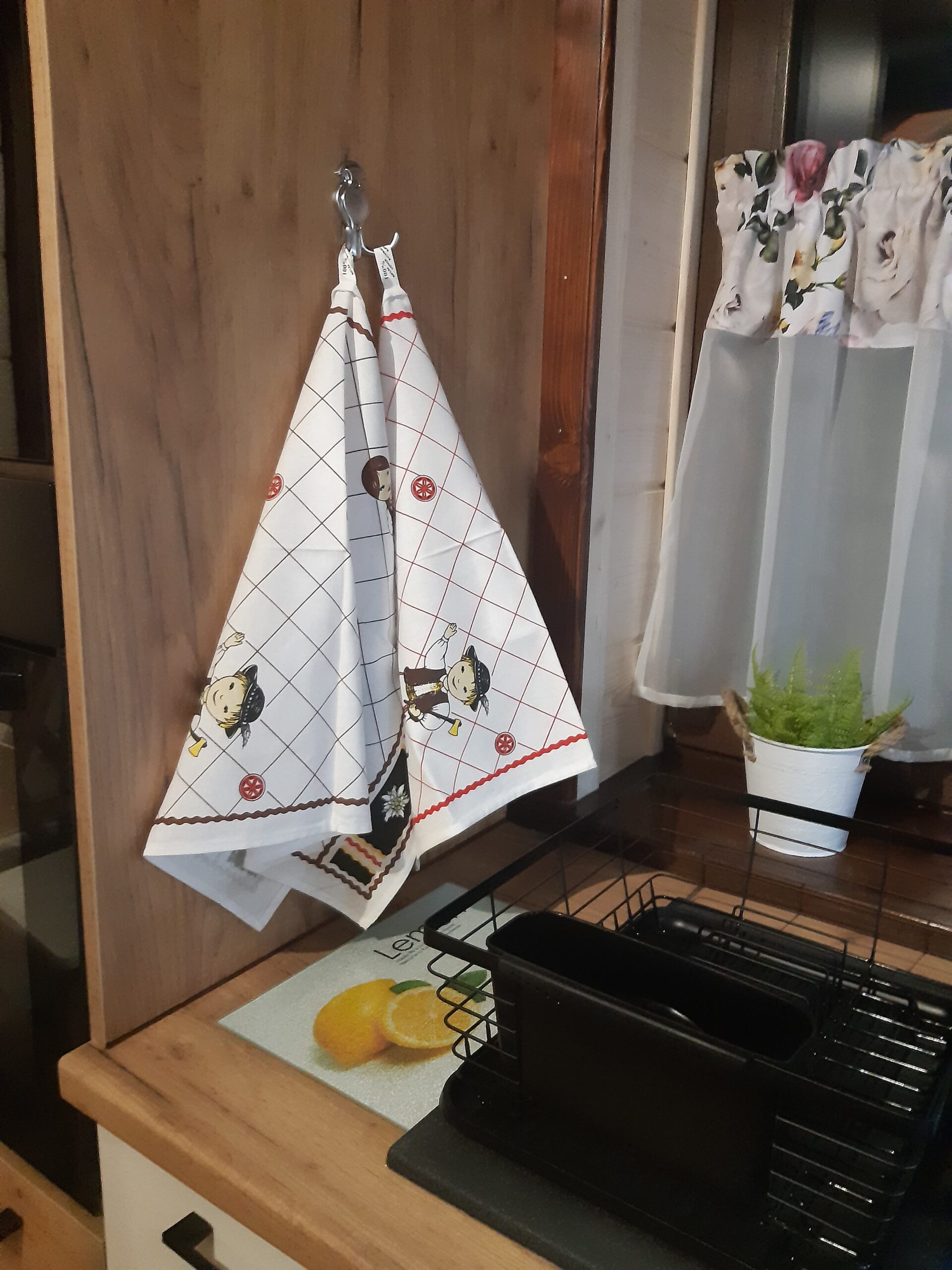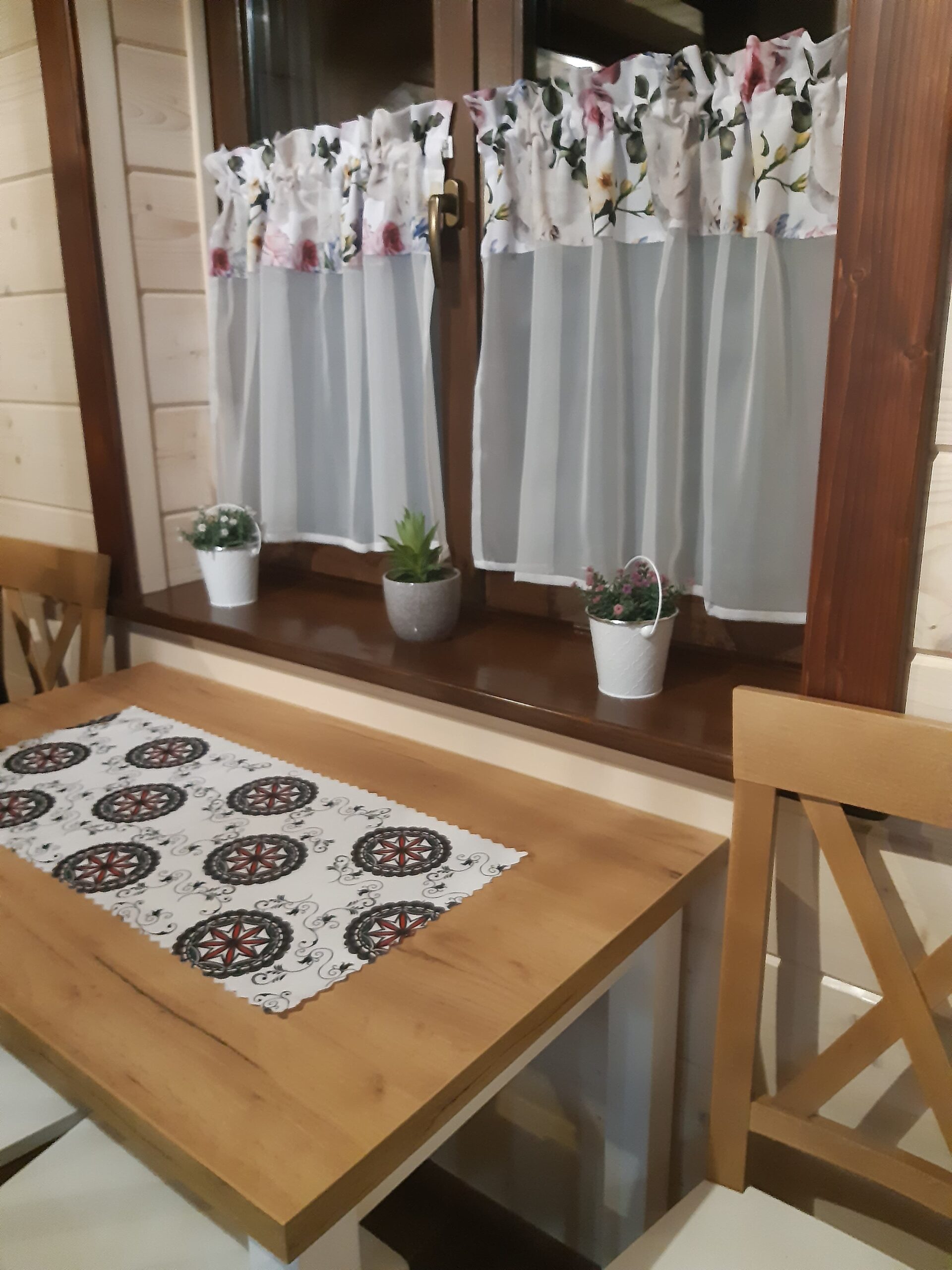 Kuchnia jest oddzielona od salonu. W pełni wyposażona: lodówka z zamrażalnikiem, zabudowana mikrofalówka i piekarnik, zmywarka, płyta indukcyjna, stół z krzesłami, czajnik, mikser, naczynia, garnki, sztućce i wszystkie niezbędne rzeczy..